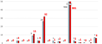 インフルエンザ感染者数は先週に比し、やや減少しています。